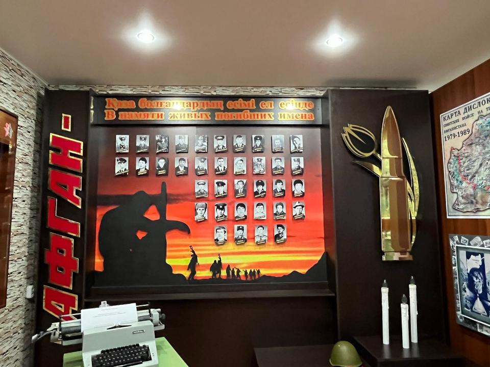 Музей располагает более 150 экспонатами времен афганской войны. А его символом стал стенд «В памяти живых погибших имена» из 36 фотографий павлодарцев, которые погибли в афганской войне.
