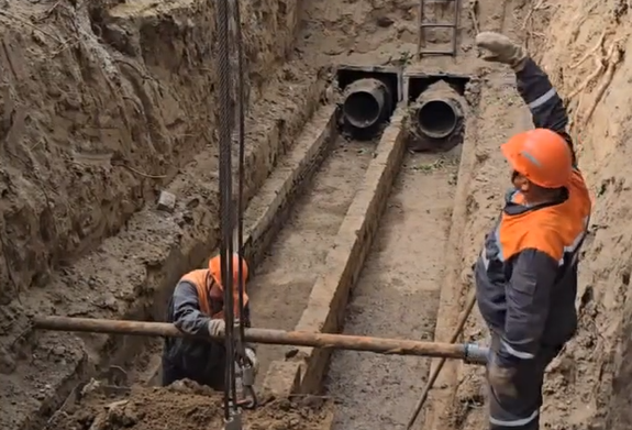 На территории детского сада № 122 проводится плановая замена тепловой магистрали № 4. Диаметр трубопровода составляет 530 мм, общая протяженность — 233 метров.