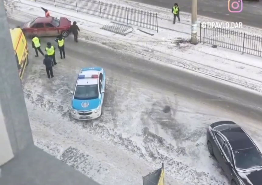 На улице М. Жусупа автомобиль «Лада-21703» вылетел на трамвайные пути, врезался в столб и снес металлическое ограждение. Об этом сообщила пресс-служба Департамента полиции Павлодарской области.