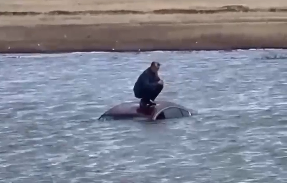 Спасатели на лодке добрались до мужчины и доставили его на берег, где передали бригаде скорой помощи. Затем вытащили и затонувшую машину.
