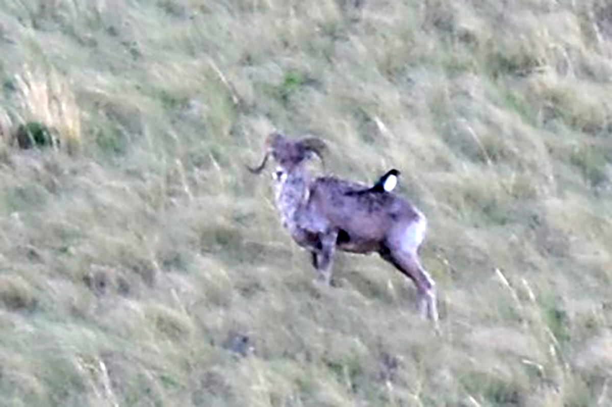 Сотрудники Баянаульского государственного национального природного парка во время обхода территории запечатлели архаров, на одном из которых удобно устроилась сорока.