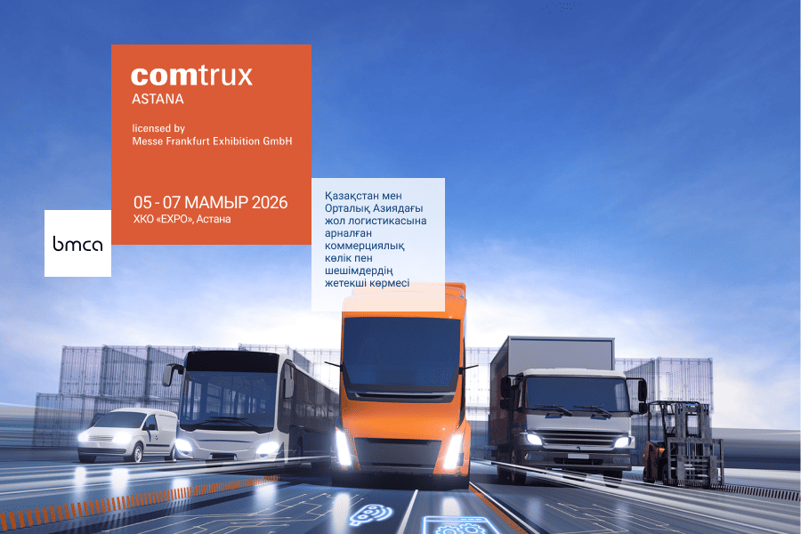 Business Media Central Asia (BMCA) рада объявить о запуске нового проекта Comtrux Astana – Международной выставки коммерческого транспорта и решений для дорожной логистики в Казахстане и Центральной Азии. Мероприятие будет организовано BMCA по лицензии Messe Frankfurt Exhibition GmbH (MFE) и пройдёт с 5 по 7 мая 2026 года в Международном выставочном центре EXPO в Астане